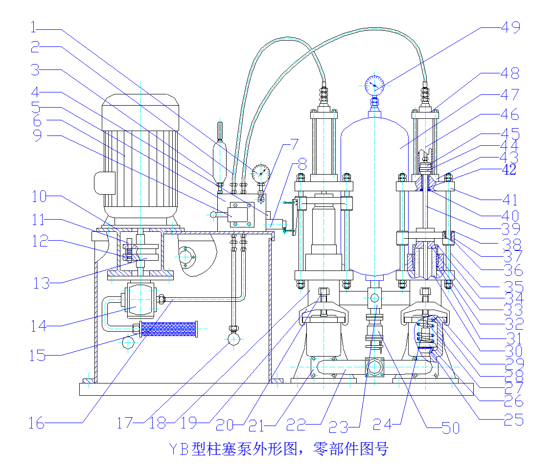 (7)應(yīng)從空氣罐47的壓力表上看到泥漿壓力波動值大于0.2MPA時,必須停泵,打開下面的閥門,放掉泥漿,補(bǔ)進(jìn)空氣,必要時卸下空氣罐上的壓力表,從上端口沖洗空氣罐。